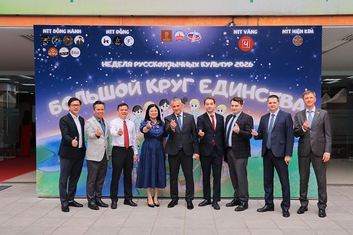 31.03.2026 г.31 сакавіка 2026 г. Надзвычайны і Паўнамоцны Пасол Рэспублікі Беларусь у Сацыялістычнай Рэспубліцы В'етнам Уладзімір Баравікоў разам з рэктарам Ханойскага ўніверсітэта Нгуен Ван Чао і прадстаўнікамі дыпмісій Расіі і Казахстана адкрыў Тыдзень культур рускамоўных краін.