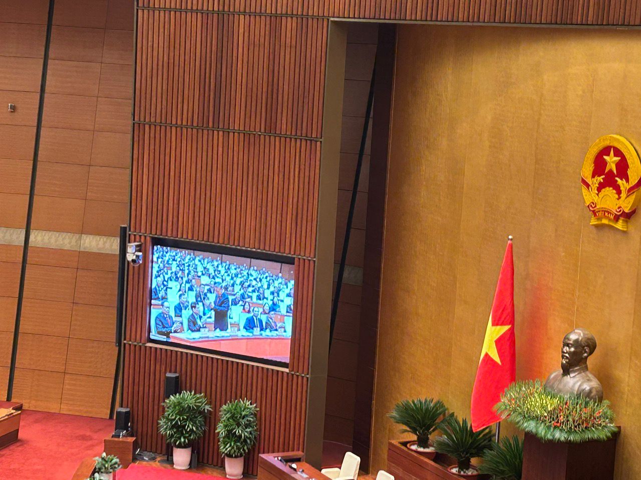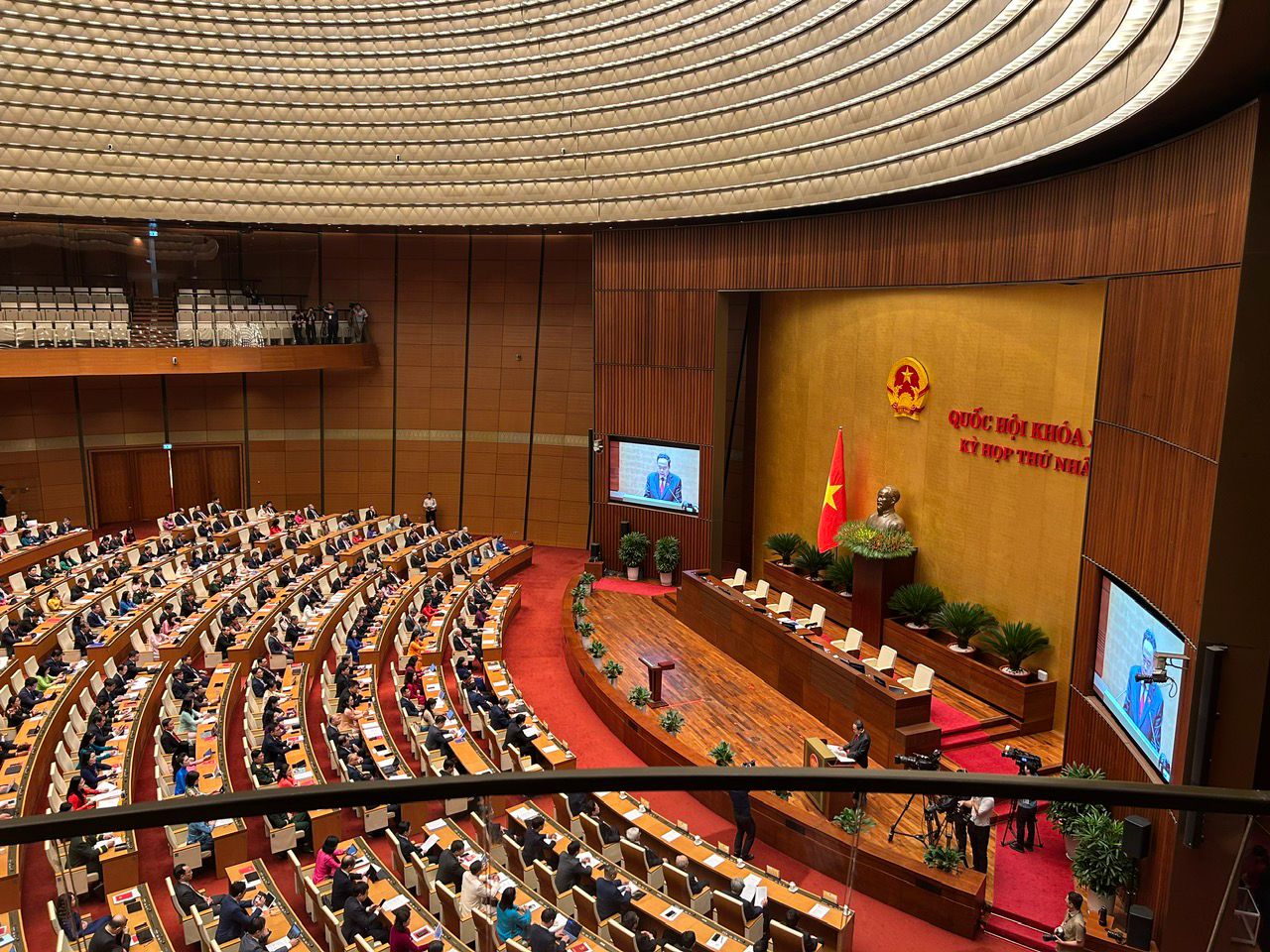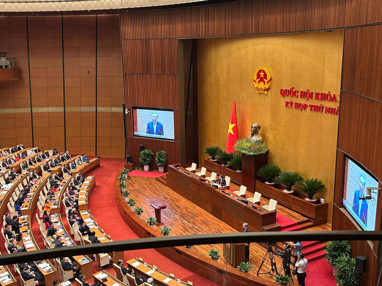 У зале пасяджэнняў Парламента прысутнічалі Генеральны сакратар ЦК Камуністычнай партыі То Лам, Прэзідэнт Лыонг Кыонг, Прэм'ер-міністр Фам Мінь Чынь, Старшыня Нацыянальнага сходу Чан Тхань Ман, Старшыня ЦК Айчыннага фронту Буй Тхі Мінь Хоай, былыя і дзейныя высокапастаўленыя партыйныя і дзяржаўныя дзеячы, дэпутаты, члены ўрада, кіраўнікі і прадстаўнікі дыпкорпуса.