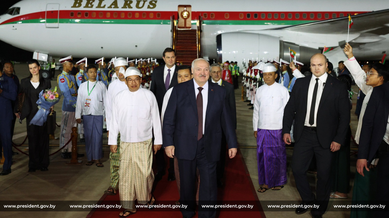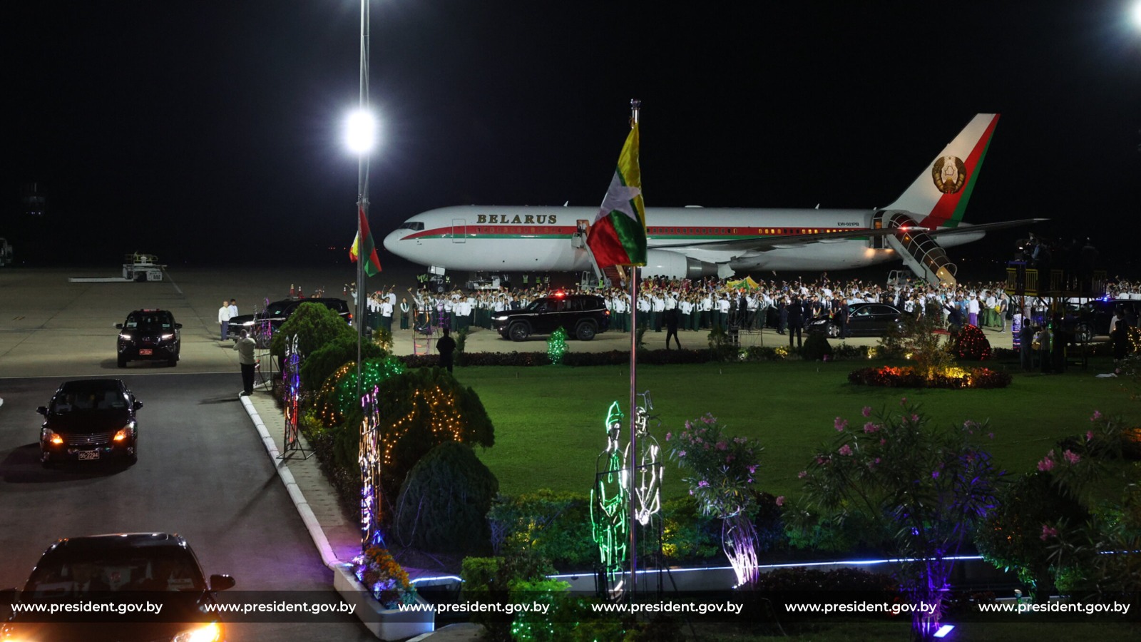 At Nay Pyi Taw International Airport, Aleksandr Lukashenko was greeted by Belarusian Minister of Foreign Affairs Maxim Ryzhenkov, Ambassador of Belarus to Vietnam and Myanmar (concurrently) Uladzimir Baravikou. On the Myanmar side, the head of the Belarusian state was welcomed by Prime Minister Nyo Saw and other officials.