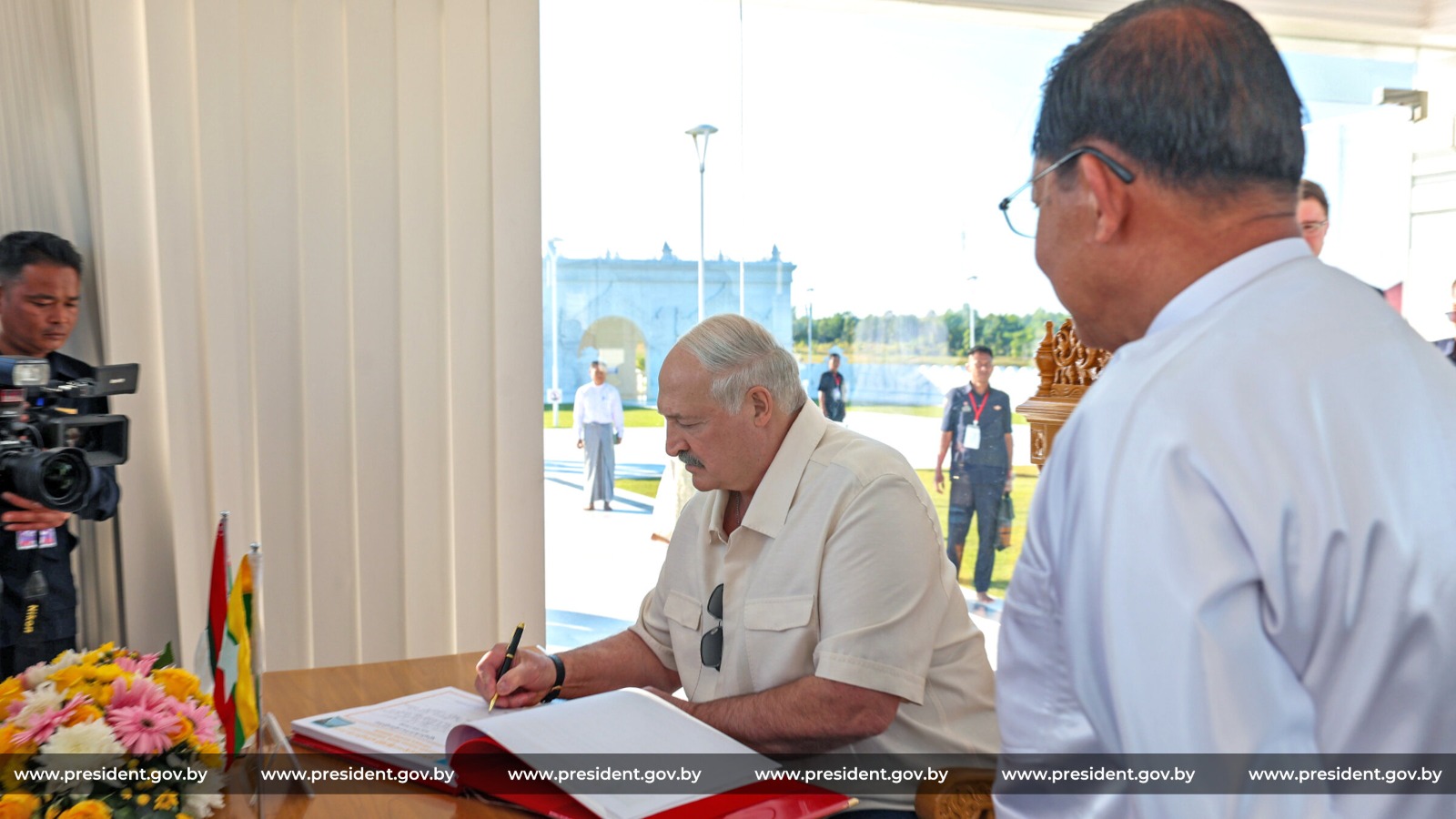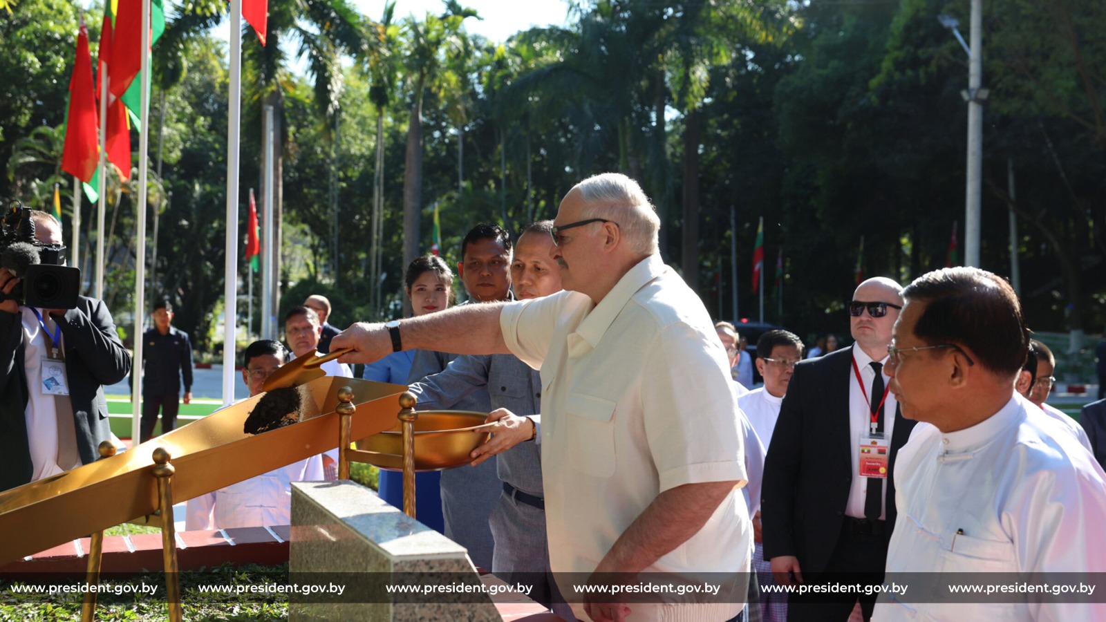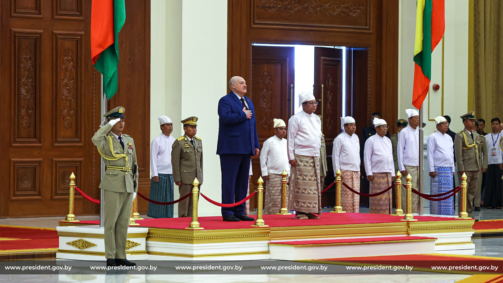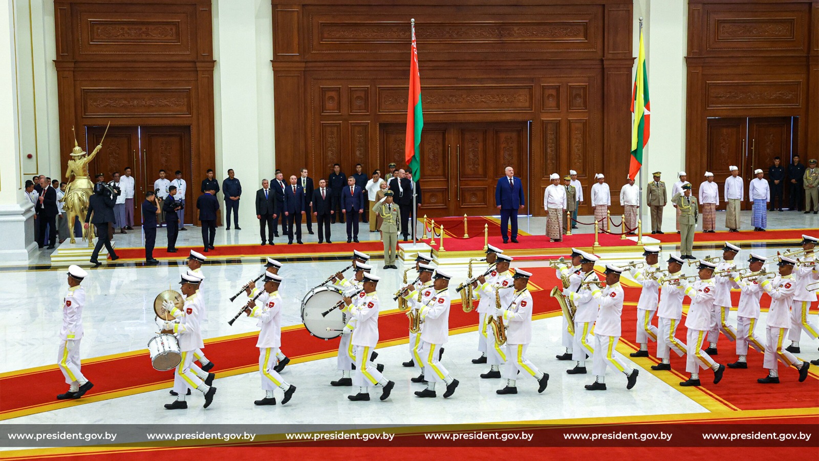 The talks were preceded by a solemn meeting attended by a guard of honour, as well as the performance of the national anthems of the Republic of Belarus and the Republic of the Union of Myanmar. After a joint photo session, Aleksandr Lukashenko signed the guest book at the Presidential Palace.