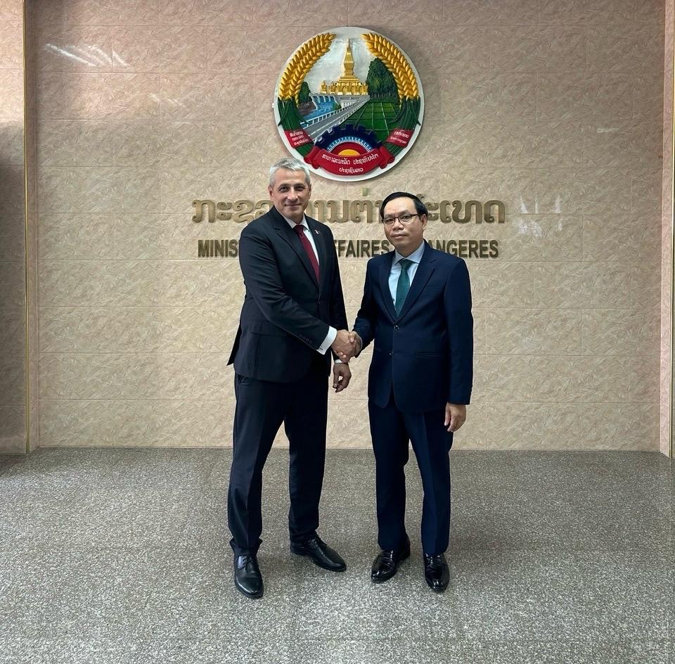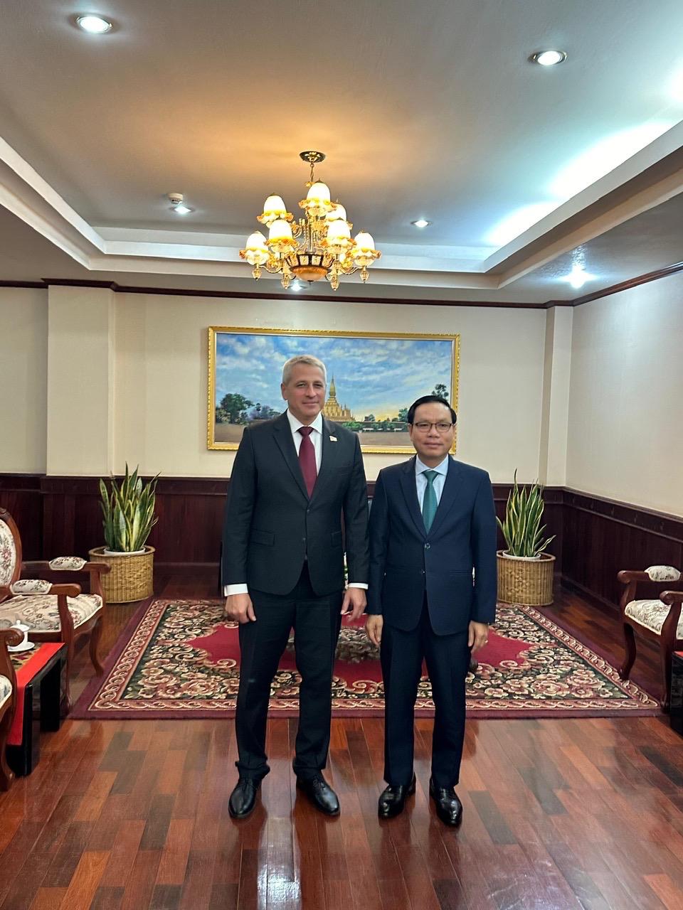 03.12.2025On December 3, 2025, during a working visit to Vientiane, Ambassador Extraordinary and Plenipotentiary of the Republic of Belarus to Vietnam and Laos (concurrently) Uladzimir Baravikou held a meeting with Deputy Minister of Foreign Affairs of Laos Maythong Thammavongsa. A substantive discussion was held on further development of political cooperation, including the schedule of upcoming joint events. The parties assured each other of their continued support in international forums.